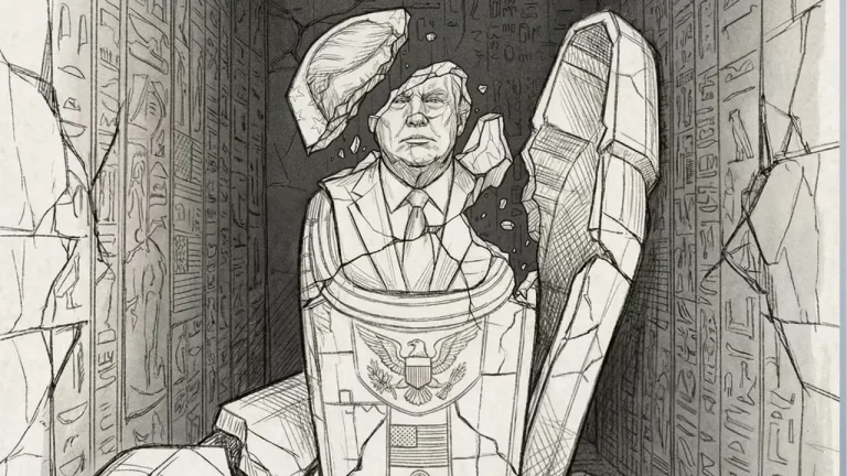 এক্স (সাবেক টুইটার)-এ পোস্ট করা ওই ছবিতে ট্রাম্পকে প্রাচীন মিসরীয় ধাঁচের পাথরের কফিনে উপস্থাপন করা হয়েছে, যা একটি সমাধিক্ষেত্ররের ভেতরে রাখা রয়েছে। কফিনটির গায়ে যুক্তরাষ্ট্রের পতাকা ও গ্রেট সিল অব দ্য ইউনাইটেড স্টেটস খোদাই করা রয়েছে এবং সেটি ফেটে ভেঙে পড়তে দেখা যাচ্ছে। কার্টুনটির ওপর লেখা রয়েছে—ফারাওয়ের মতো।