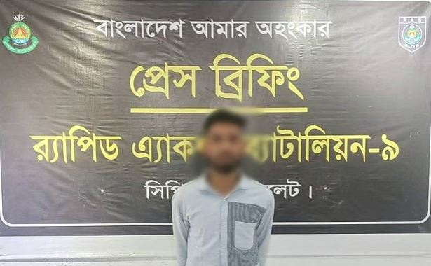 গ্রেপ্তার ছাদেক আহমেদ (৩০) বিয়ানীবাজার উপজেলার খাশির গ্রামের বাসিন্দা।
