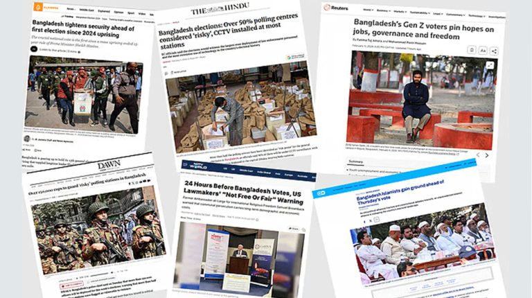 আজ বৃহস্পতিবার (১২ ফেব্রুয়ারি) অনুষ্ঠিত হতে যাওয়া বাংলাদেশের নির্বাচনের খবর গুরুত্ব দিয়ে প্রকাশ করছে বিভিন্ন আন্তর্জাতিক গণমাধ্যম।
