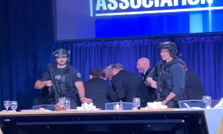 স্থানীয় সময় শনিবার ওয়াশিংটন হিলটন নামের ওই হোটেলে এ ঘটনা ঘটে। ভেন্যুর ভেতরে হঠাৎ বিকট শব্দ শোনার পর অতিথিদের টেবিলের নিচে আশ্রয় নিতেও দেখা যায়। আর এই ঘটনায় পুরো অনুষ্ঠানে চরম বিশৃঙ্খলা সৃষ্টি হয়।